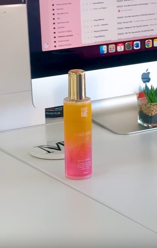 Experience our Caramel Vacay Body Spray for a luxurious and dreamy scent.