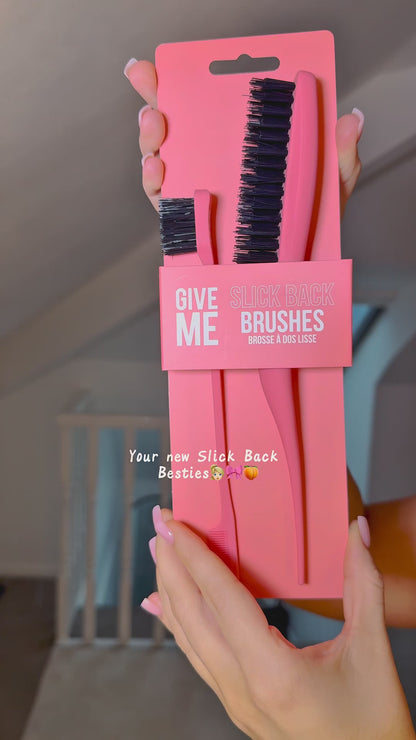 Get sleek, flawless edges with our Slick Back Brushes. Features a curved handle and soft-touch grip, with a large brush for flyaways and a duo-end detail brush for perfecting edges and baby hairs.